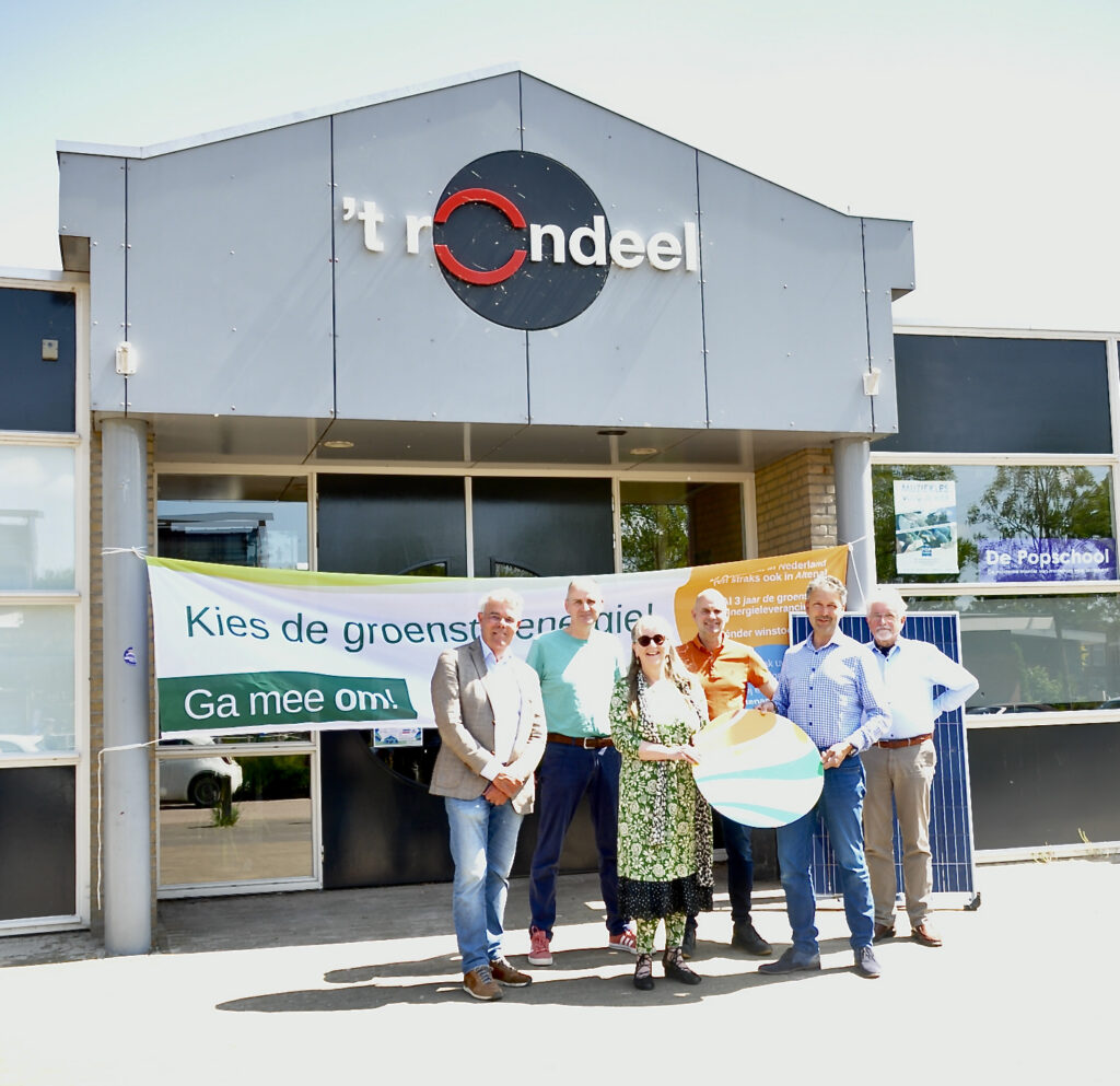 V.l.n.r. uit Woudrichem: Nico Kersten, Jan Derk Stegeman, Joyce Zuidam, Ienze Koekkoek van Altena Nieuwe Energie, voormalig wethouder duurzaamheid gemeente Altena Roland van Vugt en Hans Bas Val, ook uit Woudrichem.
